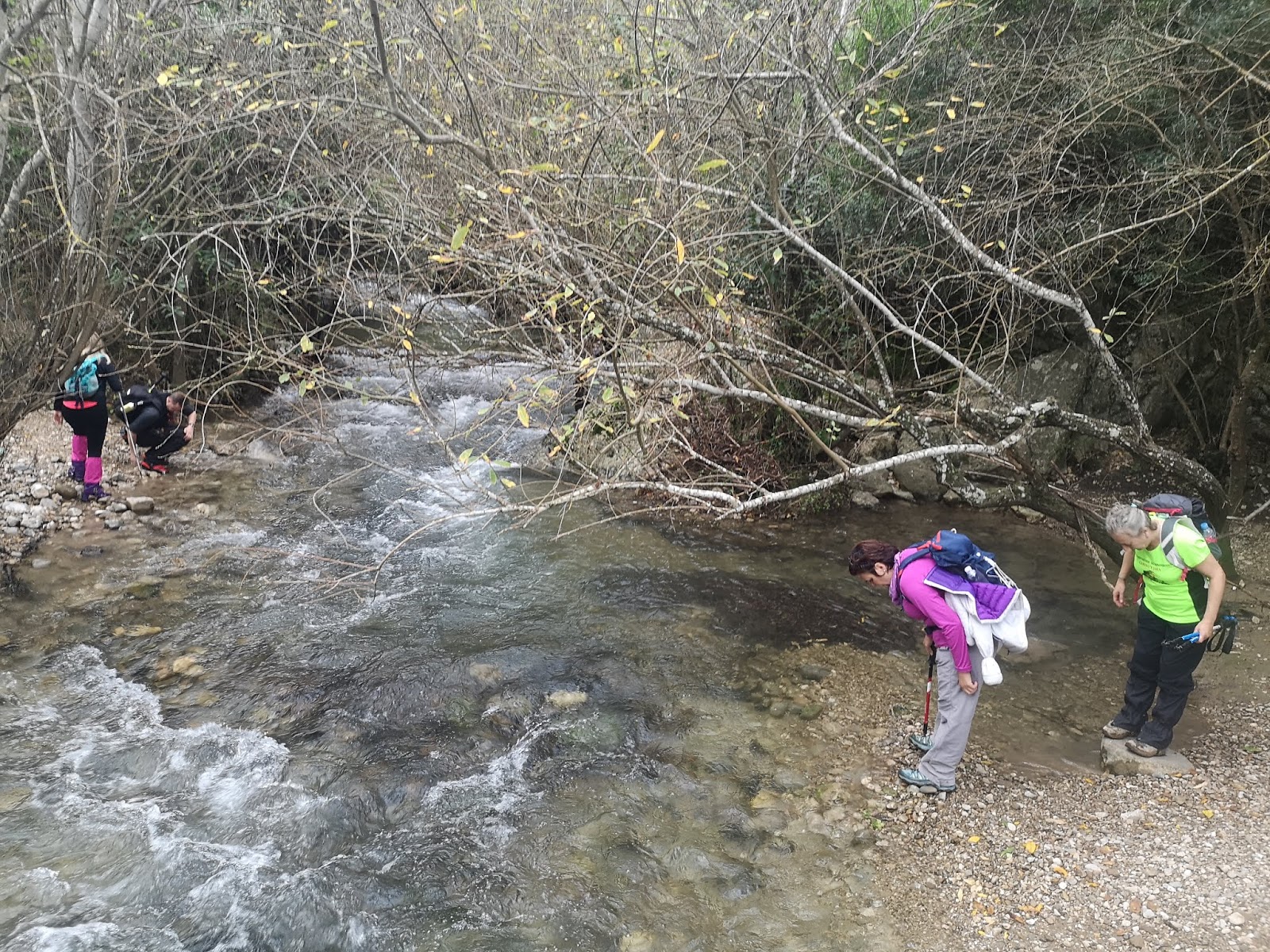 El día comenzó con un desayuno de campaña ofrecido por el club anfitrión, tras lo cual la comitiva senderista se puso en marcha para encarar la cuenca del arroyo de Los Charcones. Después de atravesar el río Tavizna, que venía algo crecido por las últimas lluvias, y dejar a un lado el imponente castillo de Aznalmara, que preside este entorno, se inicia el ascenso al cerro rodeados de una vegetación en la que predominan los árboles de madroños que nos iban a acompañar durante buena parte de la ruta.